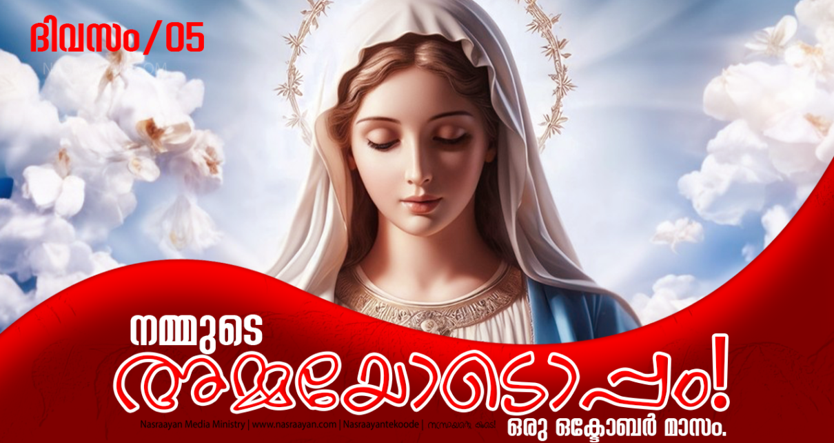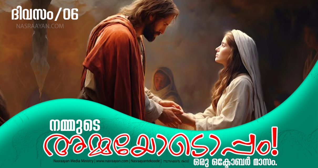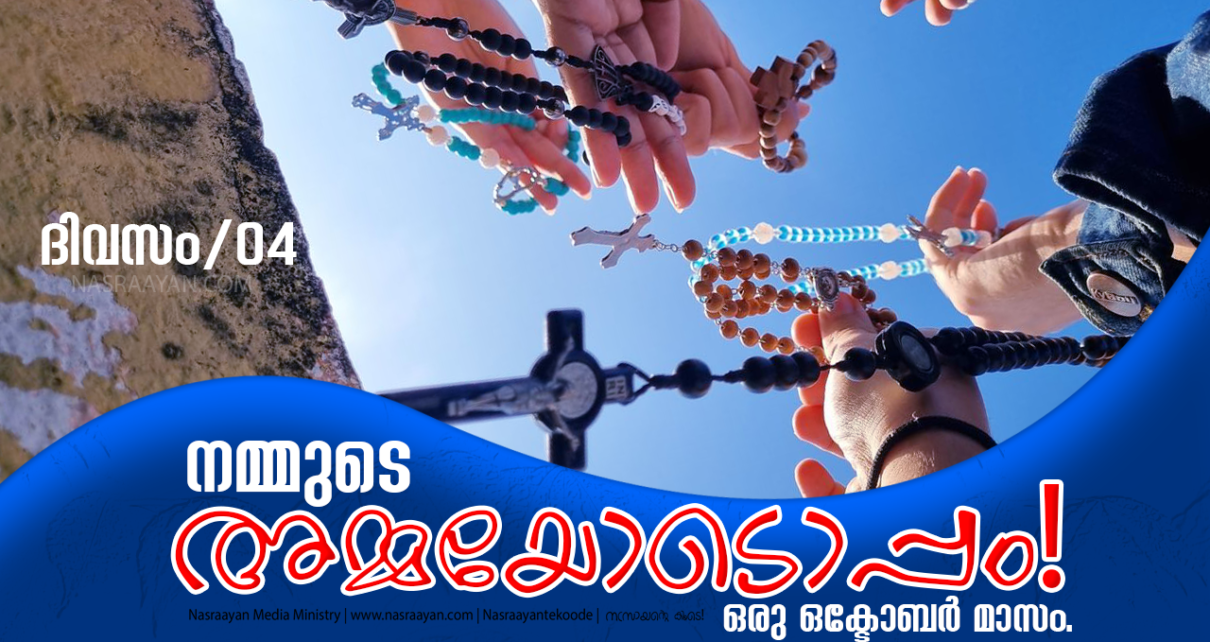 അമ്മയോടൊപ്പംദിവസം 10 – യോഹന്നാൻ 19:26–27 “യേശു തന്റെ അമ്മയും താന് സ്നേഹിച്ച ശിഷ്യനും അടുത്തു നില്ക്കുന്നതു കണ്ട് അമ്മയോടു പറഞ്ഞു: സ്ത്രീയേ, ഇതാ, നിന്റെ മകൻ. അനന്തരം അവന് ആ ശിഷ്യനോടു പറഞ്ഞു: ഇതാ, നിന്റെ അമ്മ. അപ്പോള് മുതല് ആ ശിഷ്യന് അവളെ സ്വന്തം ഭവനത്തില് സ്വീകരിച്ചു.”(യോഹന്നാന് 19 : 26-27) ക്രൂശിനരികിൽ അമ്മ നില്ക്കുന്നു — ഇത് ഒരു അത്ഭുതകരമായ നിമിഷമാണ്.മകനായ യേശുവിൻ്റെ വേദനയിലും മരണത്തിലും അമ്മ അവിടെയുണ്ട്, കൂടെ ഉണ്ട്.മറിയം വിലപിക്കുന്നില്ല, Read More…