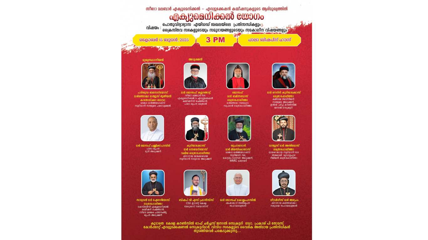 കേരളത്തിലെ വിവിധ സഭകളുടെ വിദ്യാഭ്യാസത്തിനും സഭൈക്യത്തിനുമായുള്ള ചുമതലകൾ വഹിക്കുന്ന മെത്രാന്മാരും വൈദികരും അൽമായ പ്രതിനിധികളുമാണ് സീറോ- മലബാർ എക്യുമെനിക്കൽ, വിദ്യാഭ്യാസ കമ്മീഷനുകളുടെ ആഭിമുഖ്യത്തിൽ സംഘടിപ്പിച്ച യോഗത്തിൽ പങ്കുചേർന്നത്.