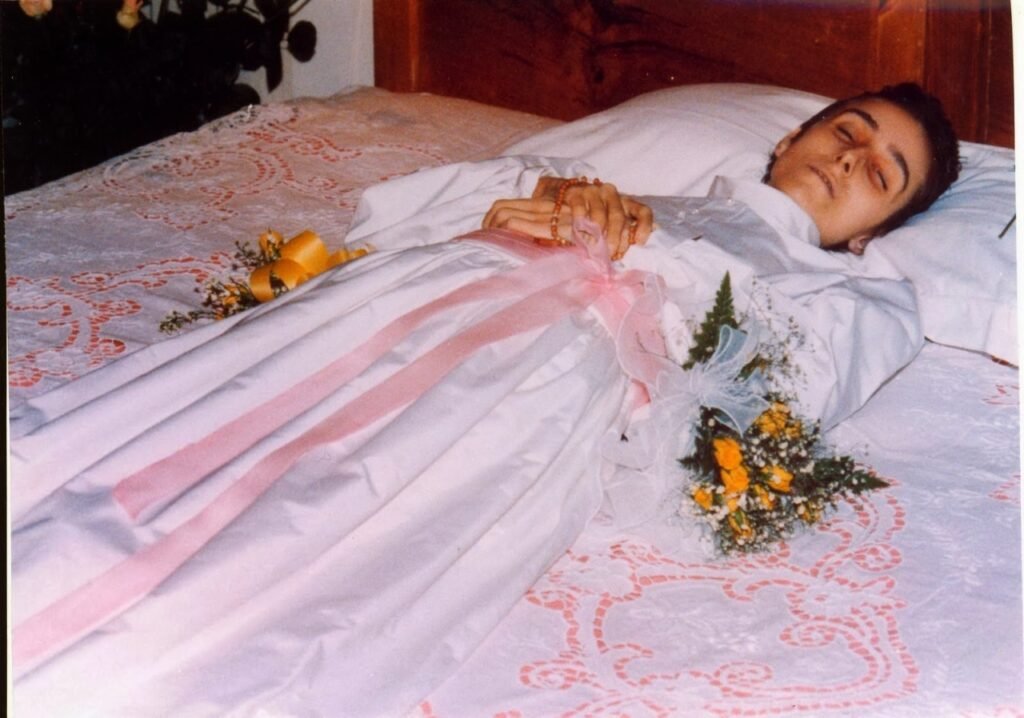 തന്റെ ശവസംസ്കാരത്തെ വിവാഹാഘോഷം ആയിട്ടാണ് അവൾ വിശേഷിപ്പിച്ചത്. അതിനായി അവൾ തന്റെ ആത്മസുഹൃത്തായ ചീക്കയോട് തനിക്കുവേണ്ടി ഒരു വെളുത്ത ഉടുപ്പും ചുവന്ന ബൽറ്റും തയ്യാറാക്കുവാൻ ആവശ്യപ്പെട്ടു. അന്ന് പാടേണ്ട പാട്ടുകളും വായനകളും അവൾ തന്നെ തിരഞ്ഞെടുത്തു. ഈ സമയത്തൊക്കെ അവൾ ശരീരം തളർന്ന് ഓക്സിജന്റെ സഹായത്തോടെയാണ് കിടന്നിരുന്നത്. കഠിനമായ വേദനകൾക്കിടയിലും അവൾ വേദന കുറയ്ക്കുവാനുള്ള മരുന്ന് സ്വീകരിച്ചിരുന്നില്ല.